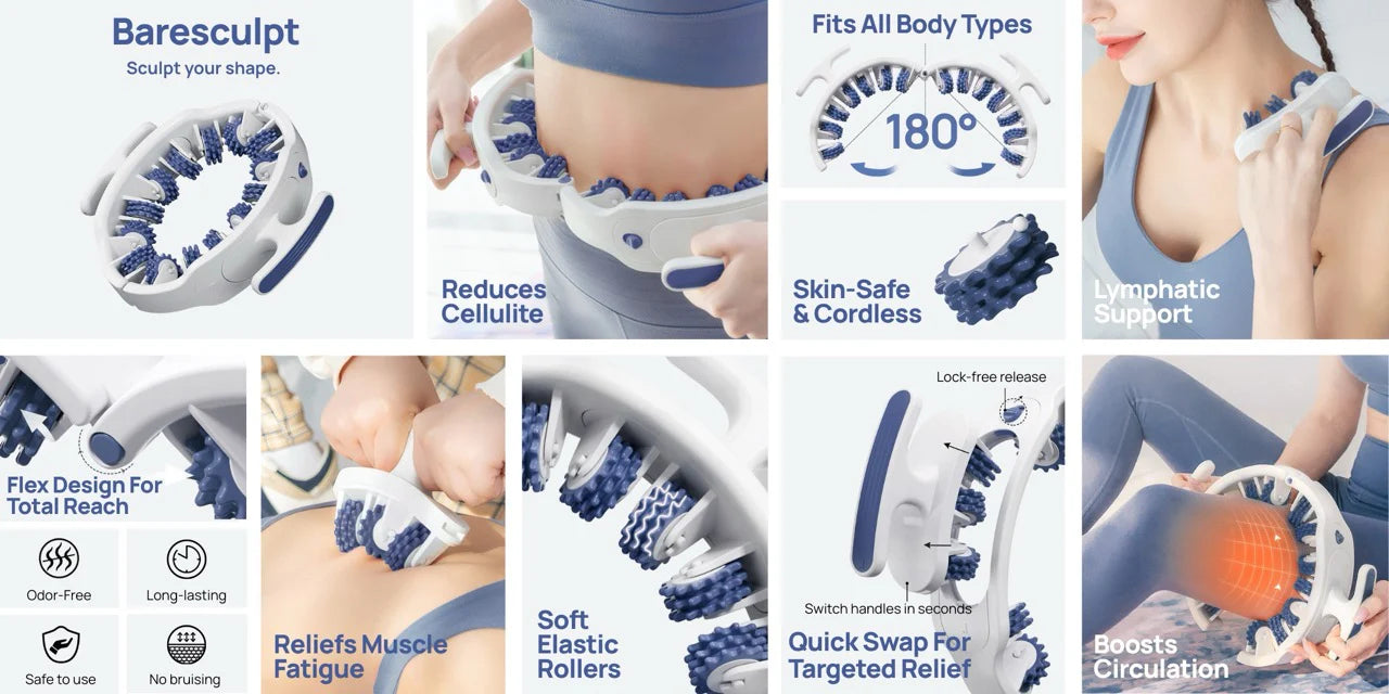Yes! Thanks to its detachable 2-in-1 design, it’s easy to use on thighs, hips, arms, back, waist, and more. It’s designed to follow the curves of the body comfortably.
