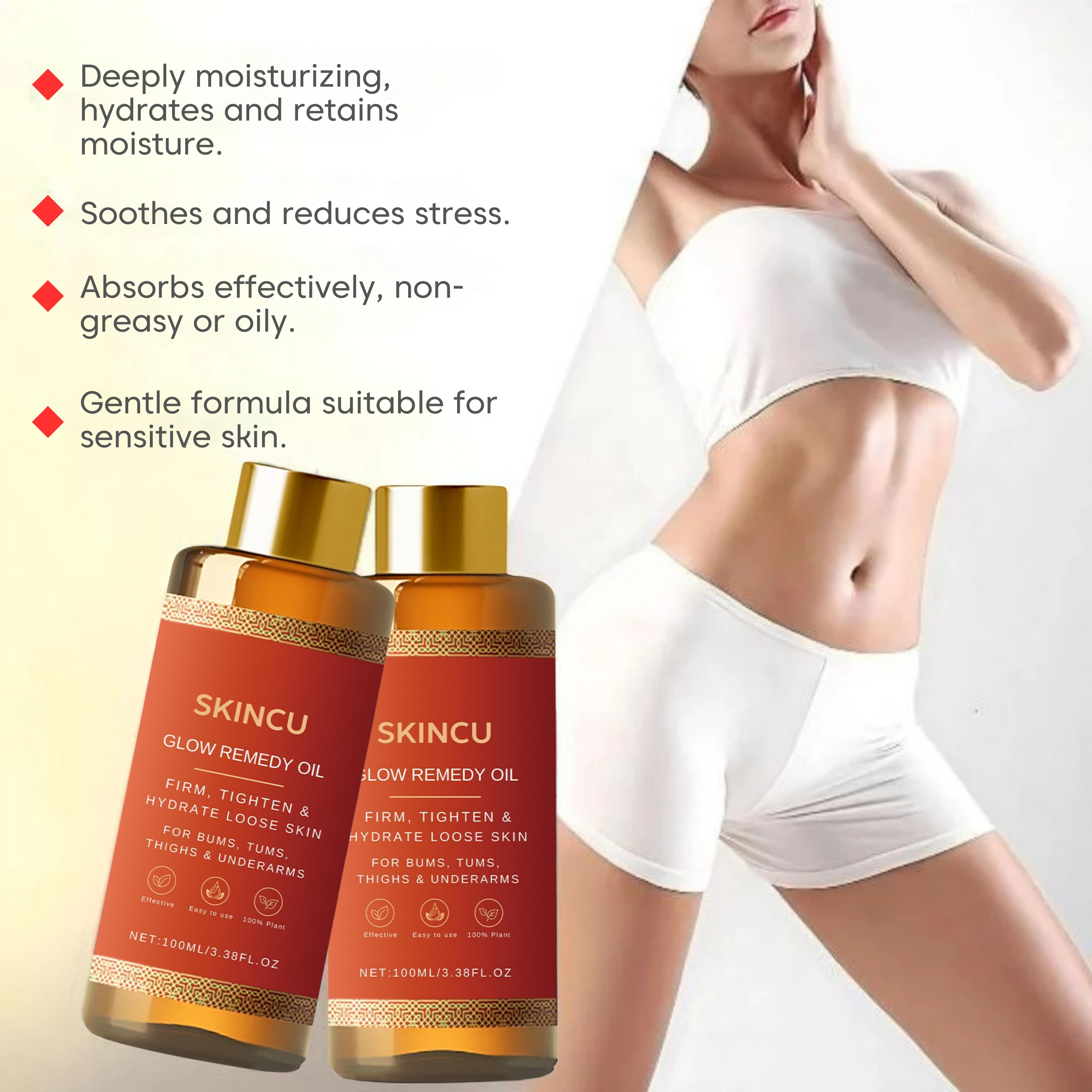 Dry, rough skin can be more than just uncomfortable it can impact your confidence. With Glow Remedy Oil, experience deep hydration that instantly leaves your skin 94% softer. Indulge in the luxury of smooth, supple skin and the confidence that comes with it, feeling rejuvenated and ready to take on the world.